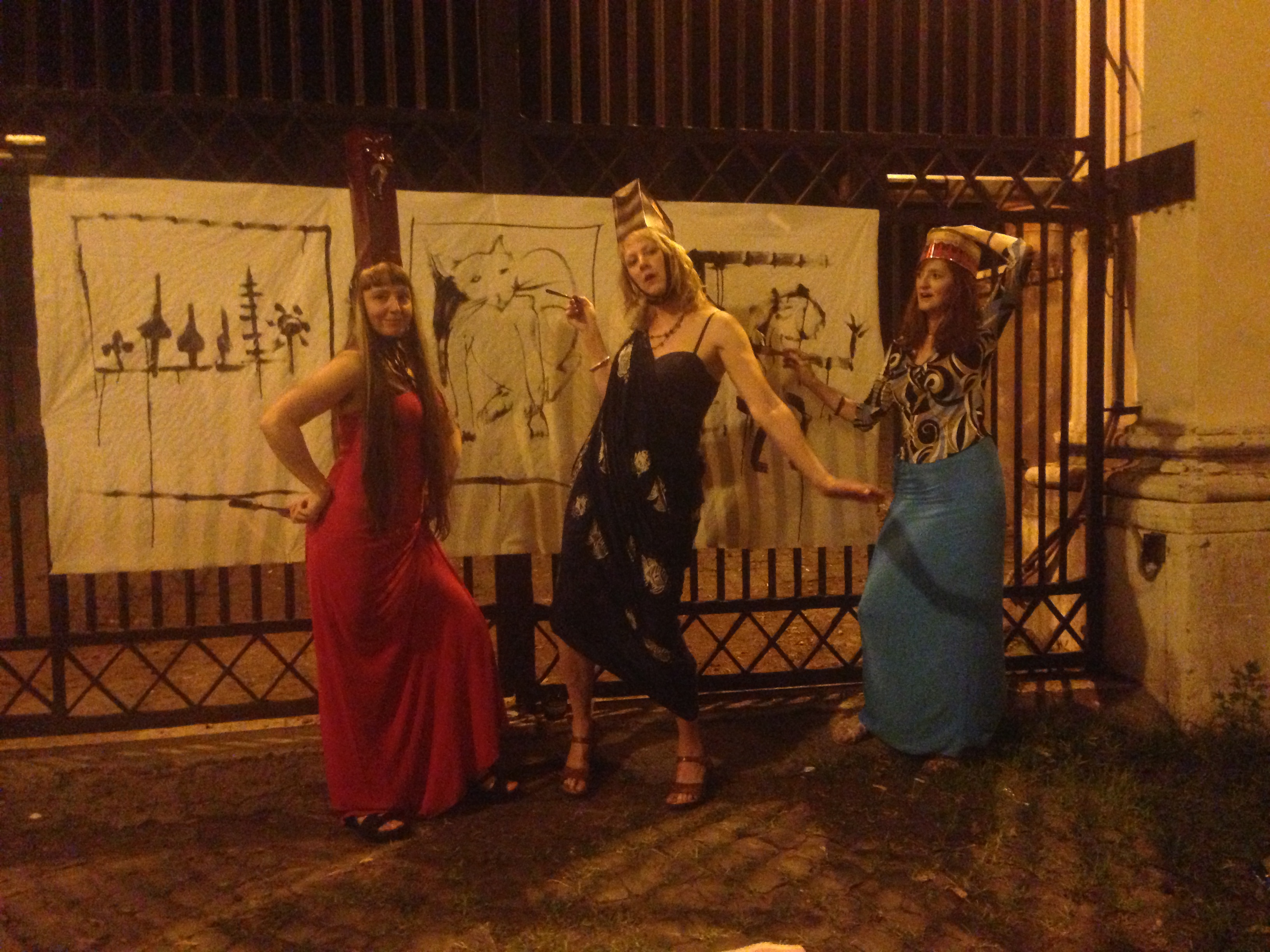 Through video projection, abstract distorted photo imagery came alive as culture, memory and childhood visions were revisited. In English and Italian, in song and movement, we recreated our past, reclaimed our history. This special event was the first time the three sisters were together in Rome since childhood.